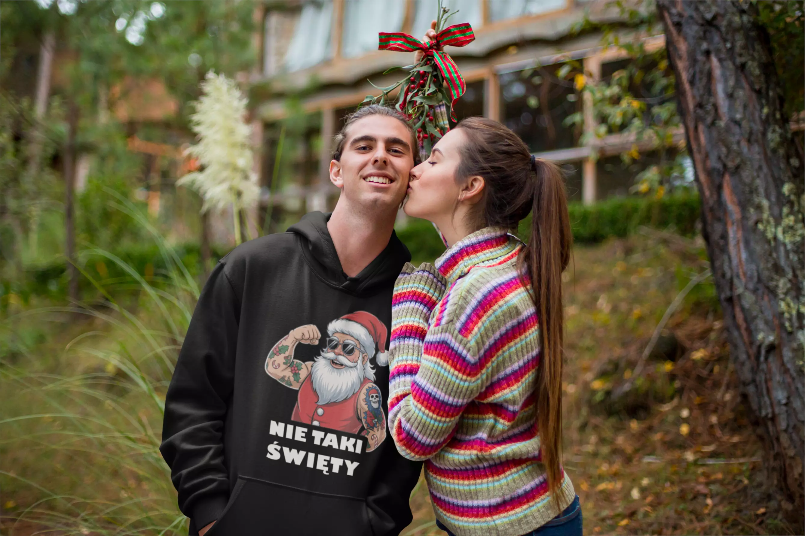 BLUZA Z KAPTUREM ŚWIĄTECZNA PREZENT MIKOŁAJKOWY Z NAPISEM: "NIE TAKI ŚWIĘTY"