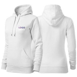 Damska bluza Cape 414 to wysokiej jakości model z kapturem o gramaturze 320 g/m², wykonany z miękkiej dzianiny typu Terry (65% bawełna, 35% poliester). Wnętrze bluzy posiada czesaną stronę, co zapewnia wyjątkowe ciepło i komfort noszenia. Dopasowany krój ze szwami bocznymi podkreśla kobiecą sylwetkę, a kaptur z podszewką, regulowany sznurkiem, oraz praktyczna kieszeń typu kangurka nadają jej sportowy charakter. Dolny ściągacz i mankiety rękawów zostały wykonane z trwałej dzianiny 2:2 z dodatkiem 5% elastanu, co zapobiega rozciąganiu. Wewnętrzna część lamówki na karku została wzmocniona kolorową taśmą, a tkana metka sprawia, że bluza jest idealną bazą pod profesjonalny haft, sitodruk czy transfer.