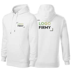 Męska bluza Cape 413 to solidny model o wysokiej gramaturze 320 g/m², wykonany z miękkiej dzianiny typu Terry (65% bawełna, 35% poliester). Czesana strona wewnętrzna zapewnia wyjątkowy komfort cieplny oraz miękkość, co sprawia, że bluza doskonale chroni przed chłodem. Prosty krój ze szwami bocznymi gwarantuje swobodę ruchów, a kaptur z podszewką, regulowany za pomocą sznurka, oraz praktyczna kieszeń typu kangurka nadają jej sportowy charakter. Dolny ściągacz i mankiety rękawów wykonane z dzianiny 2:2 z dodatkiem 5% elastanu zapewniają trwałość i idealne dopasowanie. Wewnętrzna część lamówki na karku została wzmocniona kolorową taśmą, a tkana metka podkreśla wysoką jakość wykonania, czyniąc produkt doskonałą bazą pod haft, sitodruk czy transfer.