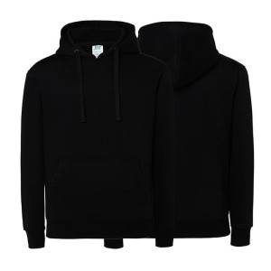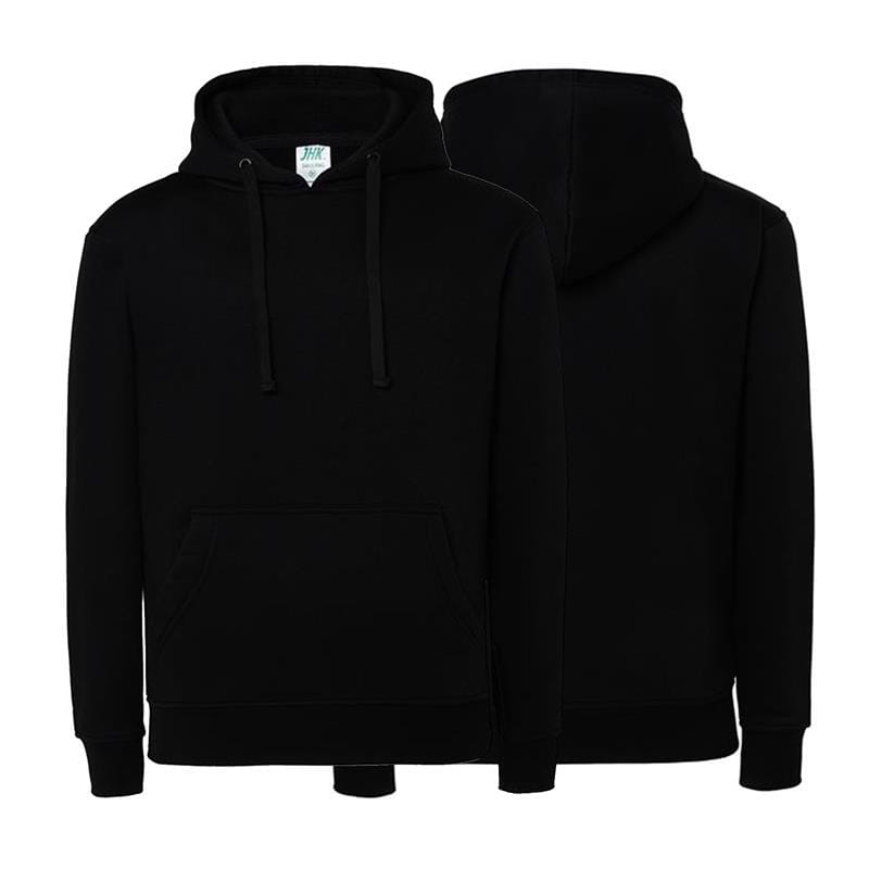 Model posiada kaptur ze sznurkami w kolorze bluzy, który chroni przed wiatrem i chłodem, oraz naszytą kieszeń typu kangur, idealną do ogrzania rąk lub przechowywania drobiazgów. Elastyczne ściągacze 2x1 przy rękawach i u dołu bluzy zapewniają idealne dopasowanie, a łatwo usuwalna metka ułatwia personalizację — bluza świetnie sprawdzi się jako element odzieży firmowej lub reklamowej.