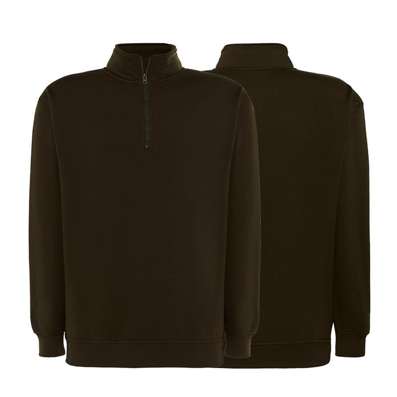 Męska bluza Half Zip Sweatshirt (SWRAZIP) to funkcjonalny model o gramaturze 290 g/m², wykonany z trwałej mieszanki 60% bawełny i 40% poliestru. Charakteryzuje się wysoką stójką zapinaną na krótki zamek pod szyją oraz elastycznymi ściągaczami 2x1 przy rękawach i u dołu. Dzięki łatwo usuwalnej metce produkt doskonale nadaje się do rebrandingu, łącząc wygodę z eleganckim, sportowym fasonem.