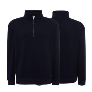 Męska bluza Half Zip Sweatshirt (SWRAZIP) to funkcjonalny model o gramaturze 290 g/m², wykonany z trwałej mieszanki 60% bawełny i 40% poliestru. Charakteryzuje się wysoką stójką zapinaną na krótki zamek pod szyją oraz elastycznymi ściągaczami 2x1 przy rękawach i u dołu. Dzięki łatwo usuwalnej metce produkt doskonale nadaje się do rebrandingu, łącząc wygodę z eleganckim, sportowym fasonem.
