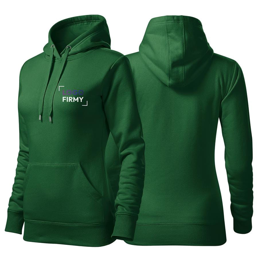 Bluza zieleń butelkowa damska z haftem nadrukiem na SERCU logo firmy 320g 414 kolor 06 bluza cape