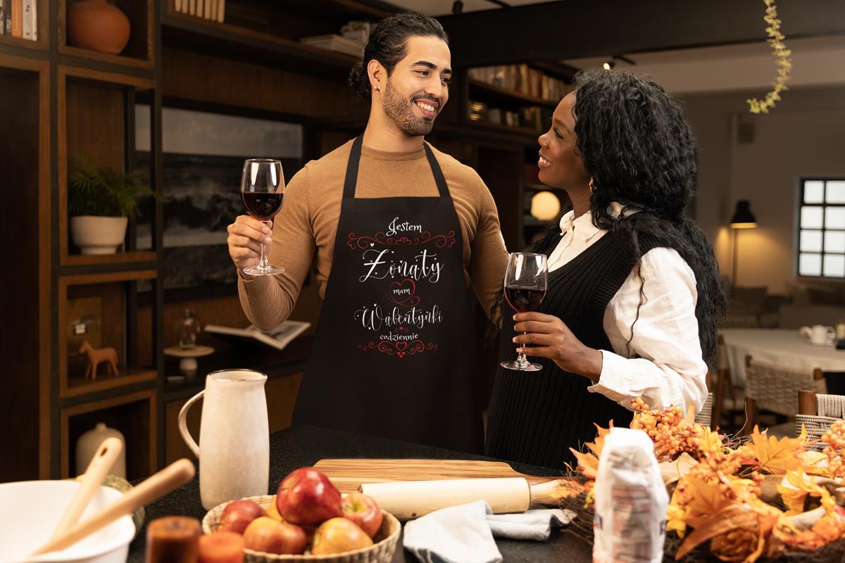 "Jestem żonaty mam walentynki codziennie" – ten fartuch to nie tylko styl, ale i humor, który podkreśli wyjątkowość obdarowywanej osoby.