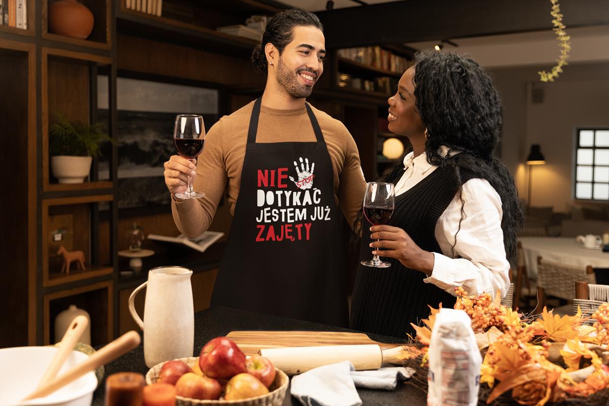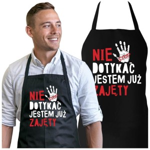 "NIE DOTYKAĆ JESTEM JUŻ ZAJĘTY" – ten fartuch to nie tylko styl, ale i humor, który podkreśli wyjątkowość obdarowywanej osoby.
