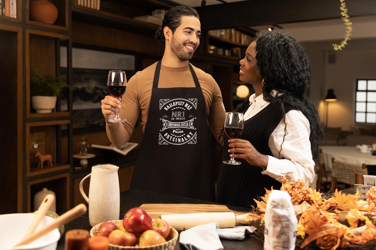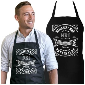 "Najlepszy mąż nr1 na świecie limitowana edycja made in Poland oryginalny 100% męskości 100% jakości" – ten fartuch to nie tylko styl, ale i humor, który podkreśli wyjątkowość obdarowywanej osoby.