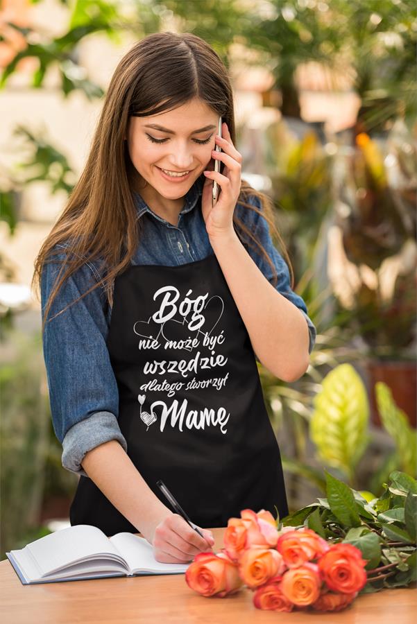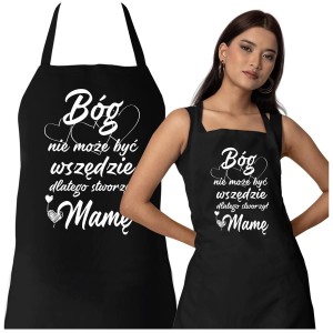 Fartuch Kuchenny dla Mamy z Nadrukiem "Bóg nie może być wszędzie, dlatego stworzył Mamę" Upominek Grill Dzień Matki