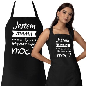 Fartuch Kuchenny dla Mamy z nadrukiem Jestem MAMĄ a Ty jaką masz super moc? Upominek Grill Dzień Matki