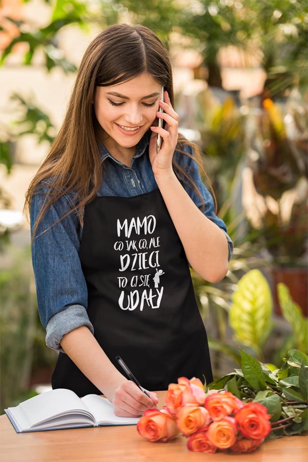 Fartuch Kuchenny dla Mamy z nadrukiem MAMO co jak co, ale dzieci to Ci się udały Upominek Grill Dzień Matki
