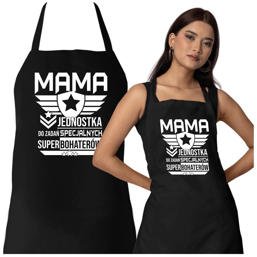 Fartuch Kuchenny dla Mamy z nadrukiem Mama jednostka do zadań specjalnych super bohaterów Upominek Grill Dzień Matki