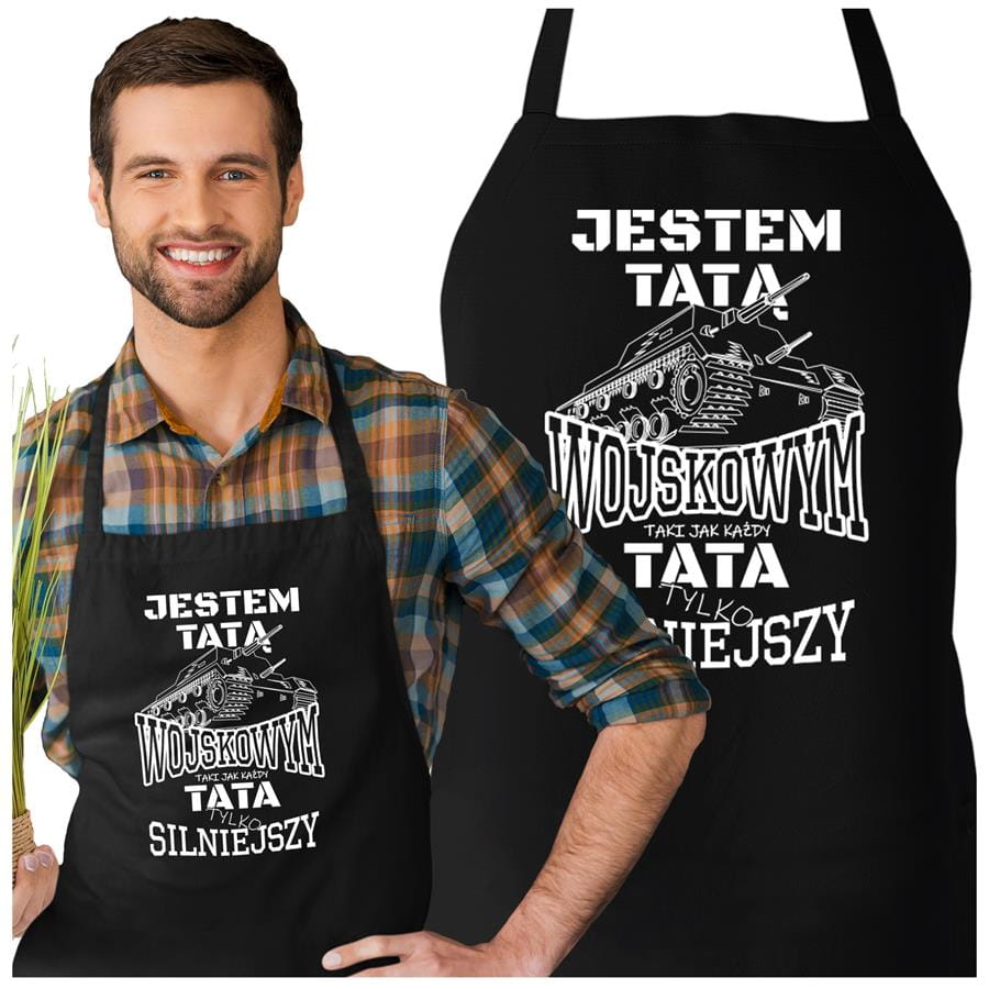 Wyjątkowy fartuch dla taty z napisem: "Jestem TATĄ wojskowym taki jak każdy TATA tylko, że silniejszy".