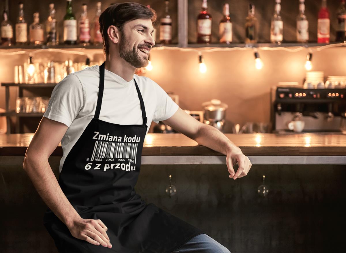 Fartuch na 60 urodziny prezent urodzinowy z napisem: "Zmiana kodu na 6 z przodu 1965" SITO
