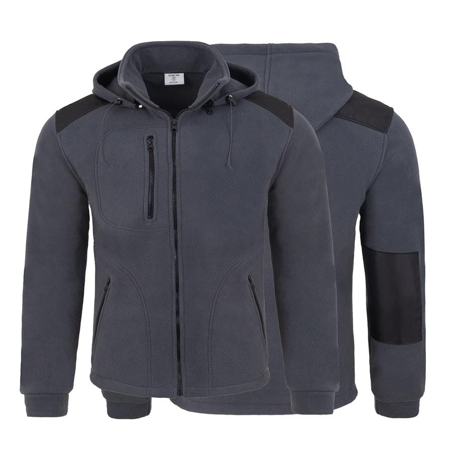 Polar FLRA340H Premium to gruby, zimowy polar z kapturem (340–360 g/m²) zapinany na długi zamek, z odpinanym kapturem. Ma kieszenie na suwak (boczne + na piersi), wykończenie antypillingowe, wzmocnienia na ramionach i rękawach oraz regulację dołu sznurkiem — świetny do pracy i pod haft komputerowy.