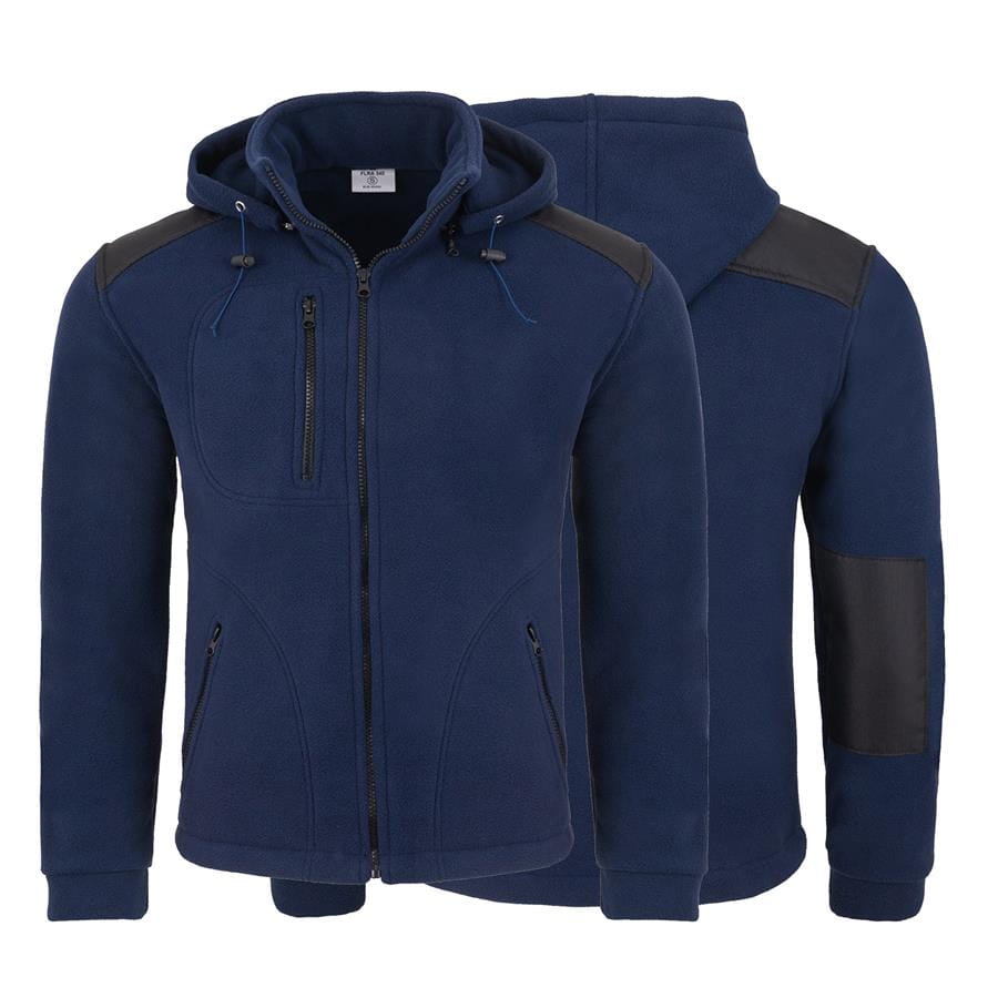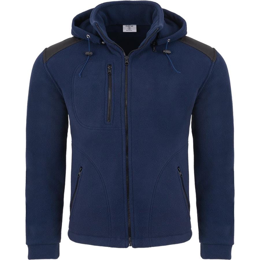 Gruby polar z haftem z odpinanym kapturem, z wzmocnieniami oraz trzema kieszeniami koloru Navy/Black