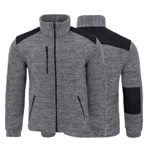 Gruby polar z haftem z wzmocnieniami oraz trzema kieszeniami koloru Grey Melange/Black