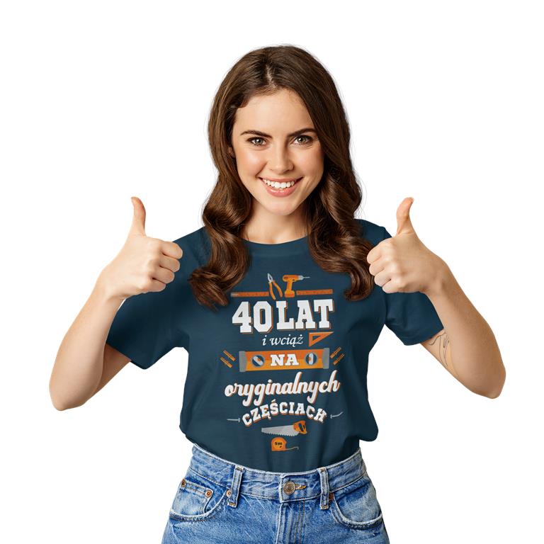 KOSZULKA DLA KOBIETY NA 40 URODZINY 40 LAT I WCIĄŻ NA ORYGINALNYCH CZĘŚCIACH