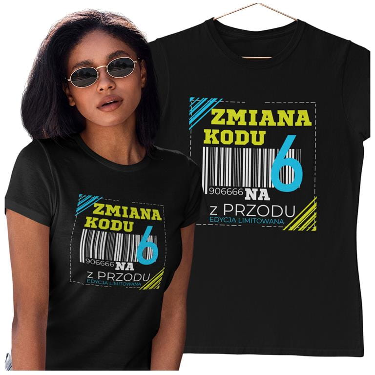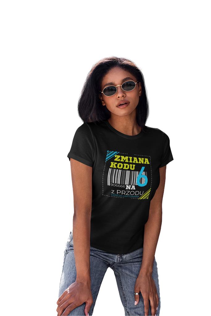 KOSZULKA DLA KOBIETY NA 60 URODZINY ZMIANA KODU NA 6 Z PRZODU DTF