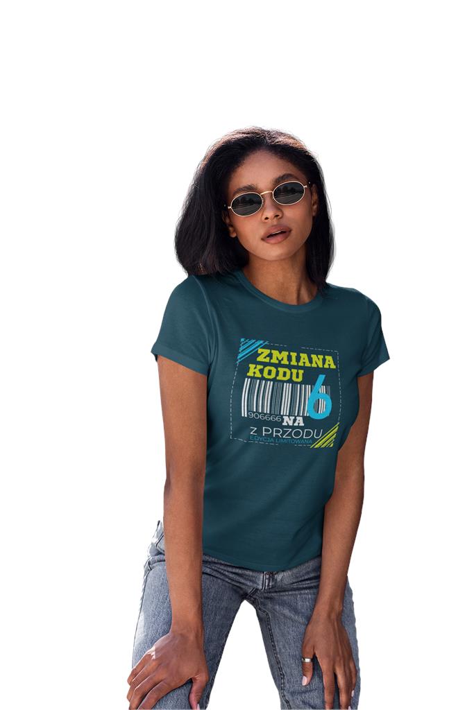 KOSZULKA DLA KOBIETY NA 60 URODZINY ZMIANA KODU NA 6 Z PRZODU DTF