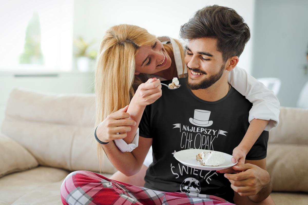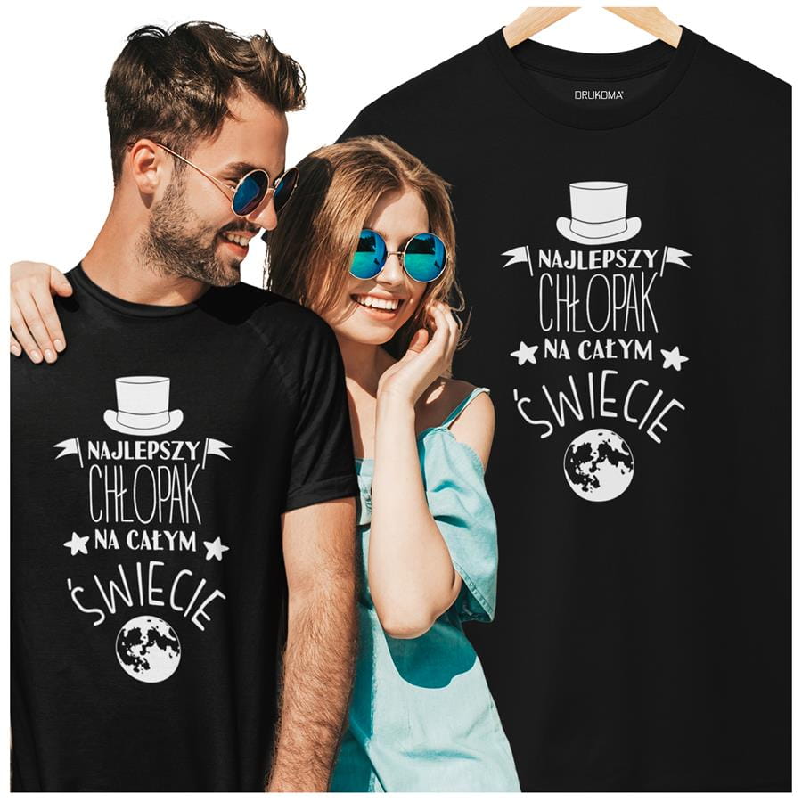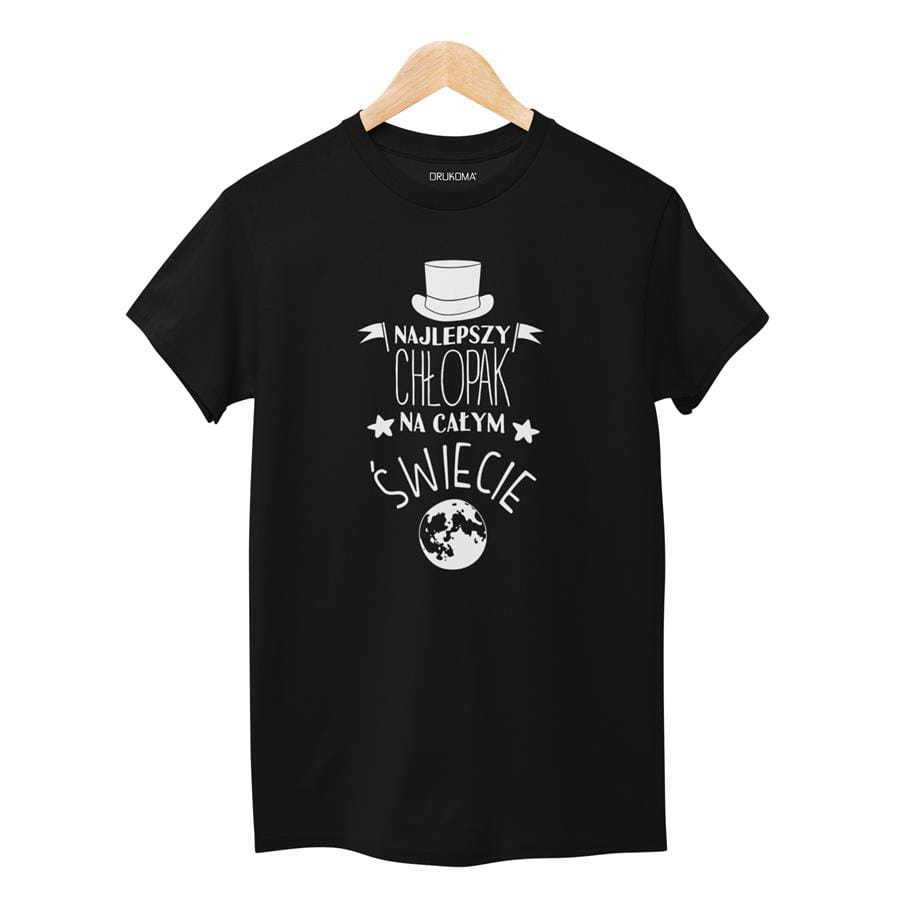 KOSZULKA NA DZIEŃ CHŁOPAKA PREZENT DLA CHŁOPAKA Z NAPISEM: "Najlepszy Chłopak na całym świecie" KOLOR CZARNY