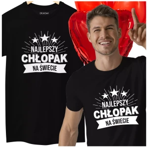 KOSZULKA NA DZIEŃ CHŁOPAKA PREZENT DLA CHŁOPAKA Z NAPISEM: "Najlepszy chłopak na świecie" KOLOR CZARNY
