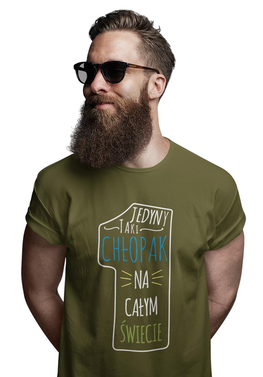 KOSZULKA NA WALENTYNKI PREZENT DLA CHŁOPAKA JEDYNY TAKI CHŁOPAK NA CAŁYM ŚWIECIE KOLOR KHAKI