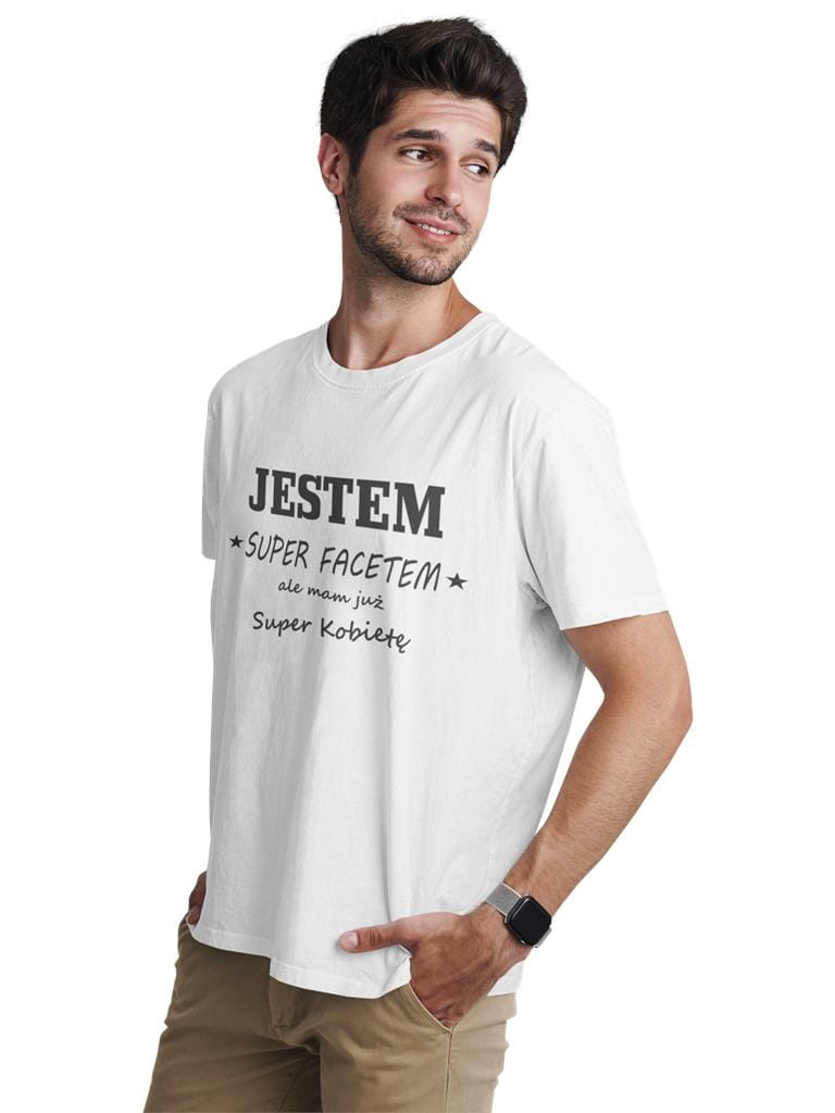 KOSZULKA NA WALENTYNKI PREZENT DLA CHŁOPAKA JESTEM SUPER FACETEM ALE MAM JUŻ SUPER KOBIETĘ