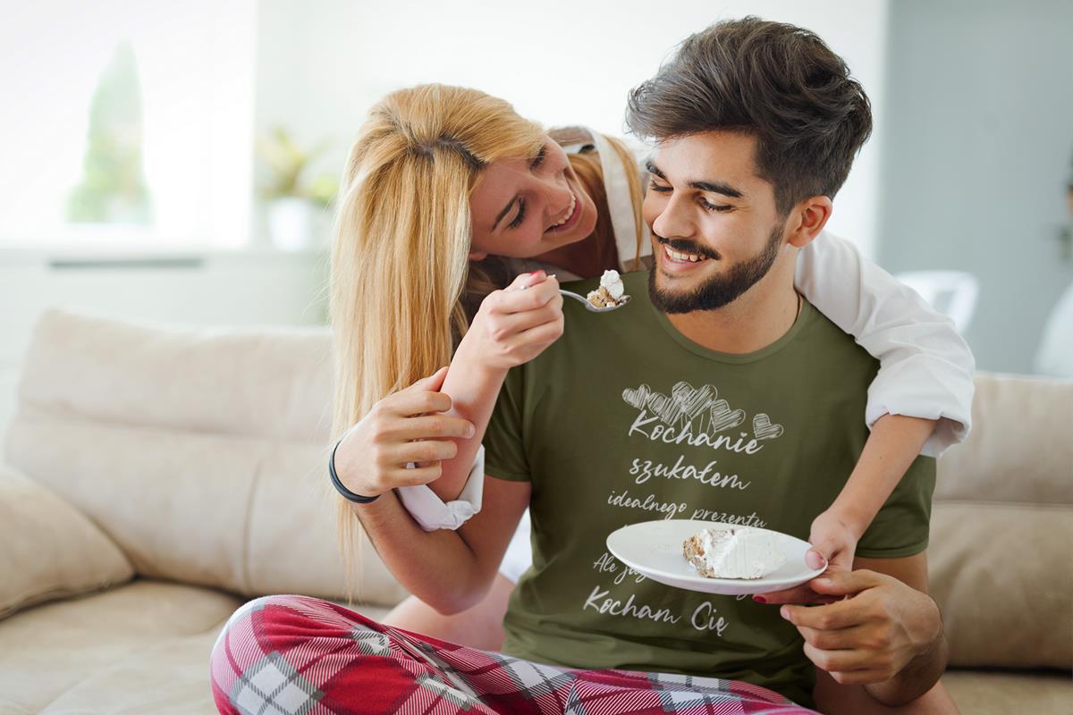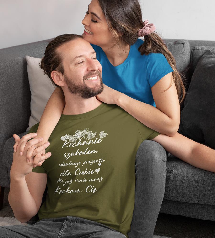 KOSZULKA NA WALENTYNKI PREZENT DLA CHŁOPAKA KOCHANIE SZUKAŁEM IDEALNEGO PREZENTU DLA CIEBIE, ALE JUŻ MNIE MASZ KOCHAM CIĘ KOLOR KHAKI