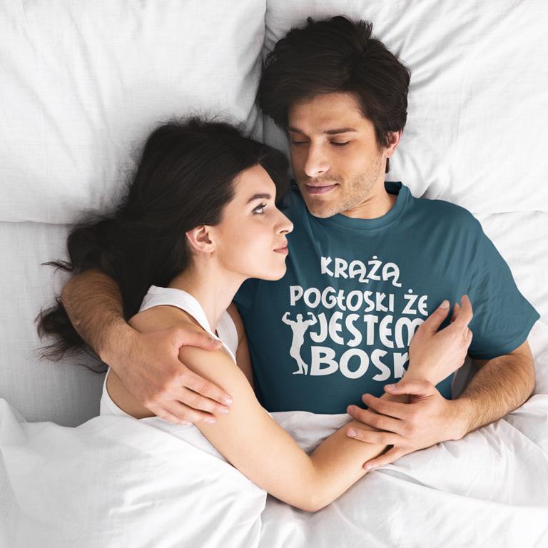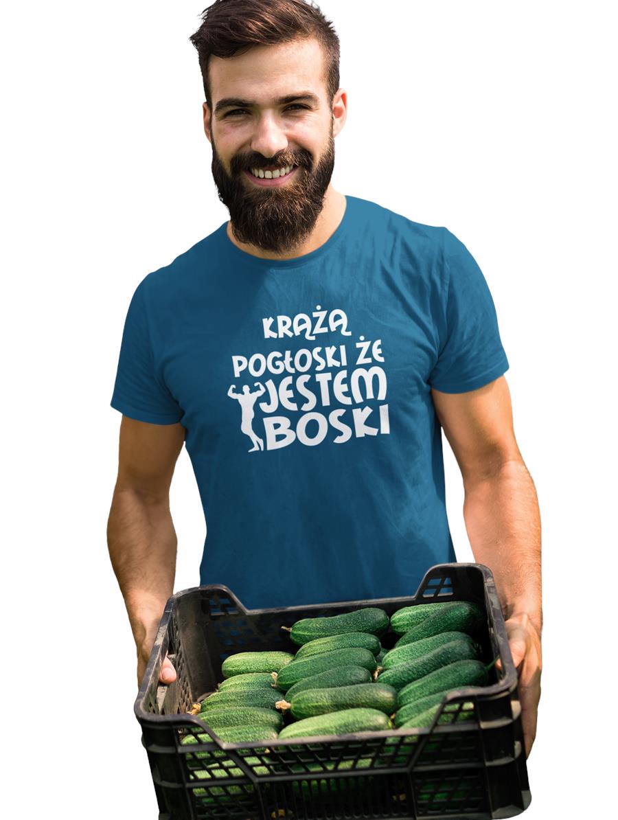 KOSZULKA NA WALENTYNKI PREZENT DLA CHŁOPAKA KRĄŻĄ POGŁOSKI ŻE JESTEM BOSKI KOLOR PETROL BLUE