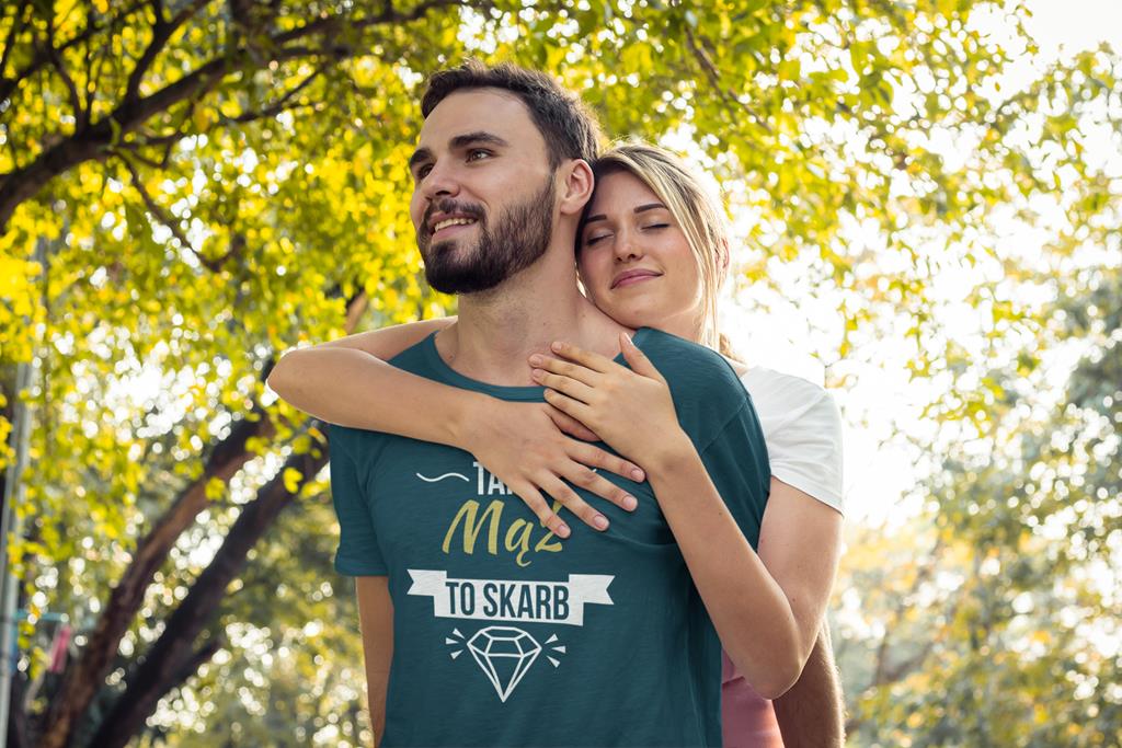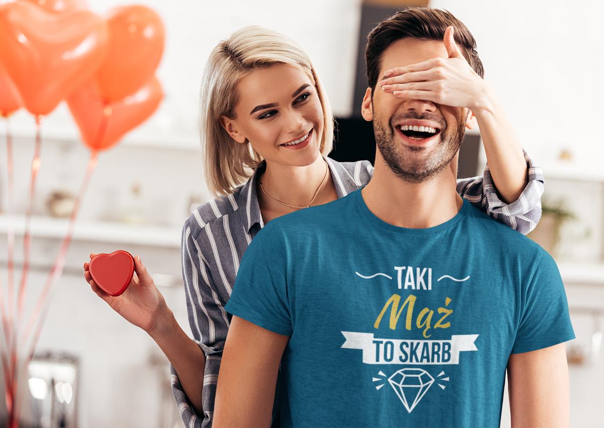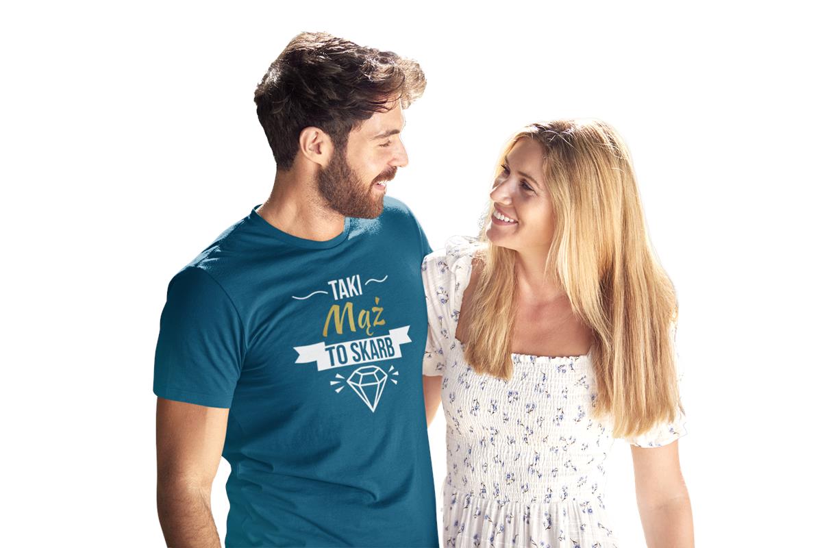 "Taki mąż to skarb" – ta koszulka to nie tylko styl, ale i humor, który podkreśli wyjątkowość obdarowywanej osoby.