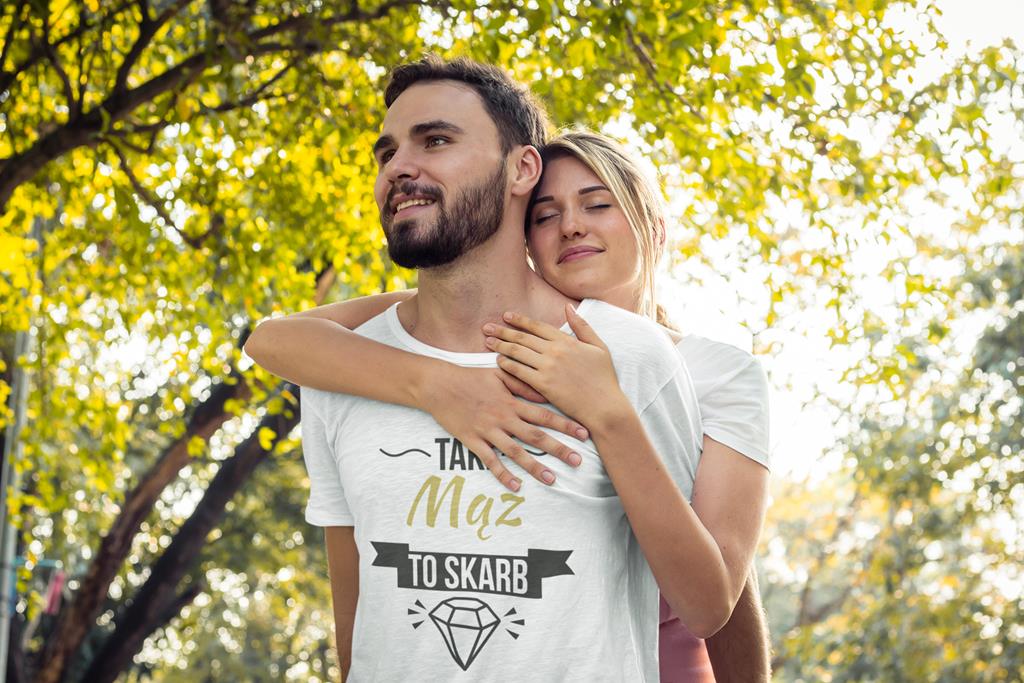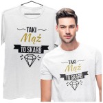 "Taki mąż to skarb" – ta koszulka to nie tylko styl, ale i humor, który podkreśli wyjątkowość obdarowywanej osoby.