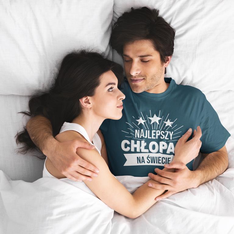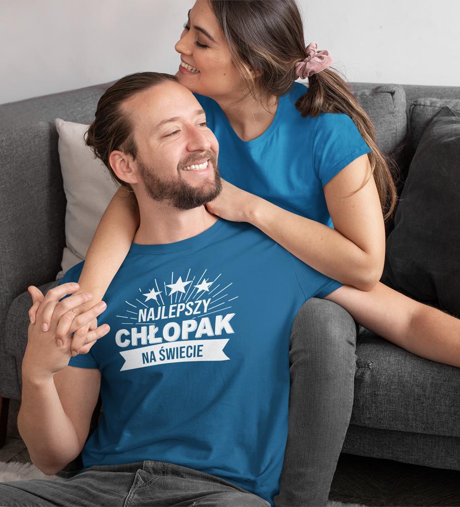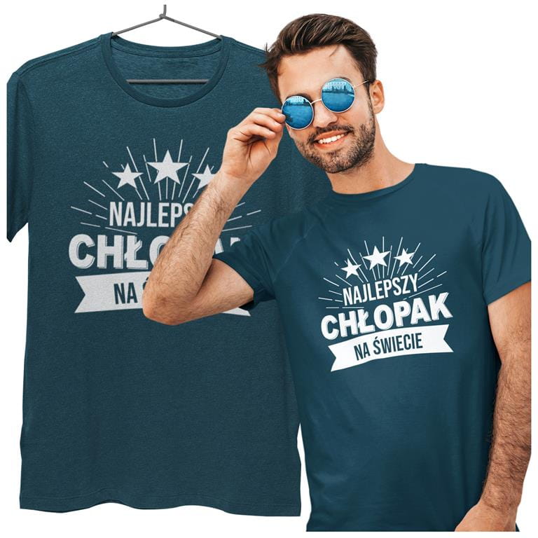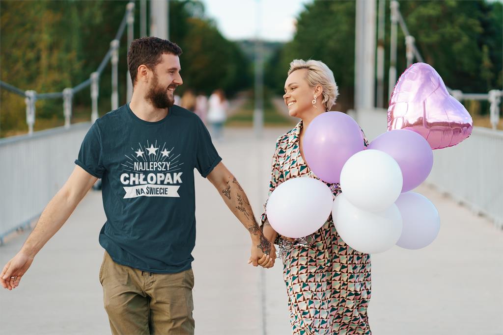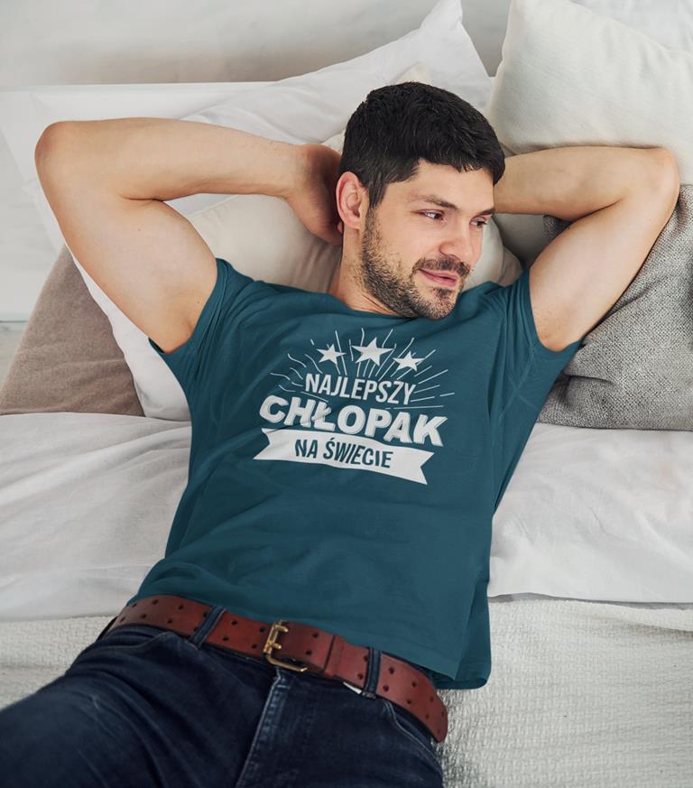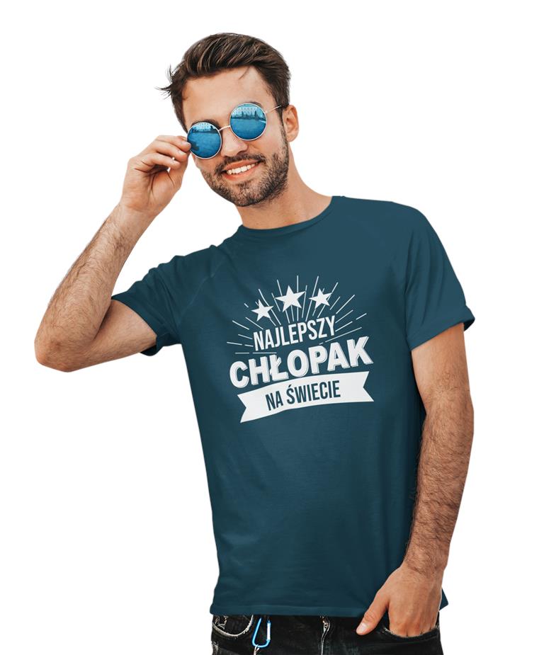 KOSZULKA NA WALENTYNKI PREZENT DLA CHŁOPAKA NAJLEPSZY CHŁOPAK NA ŚWIECIE KOLOR PETROL BLUE