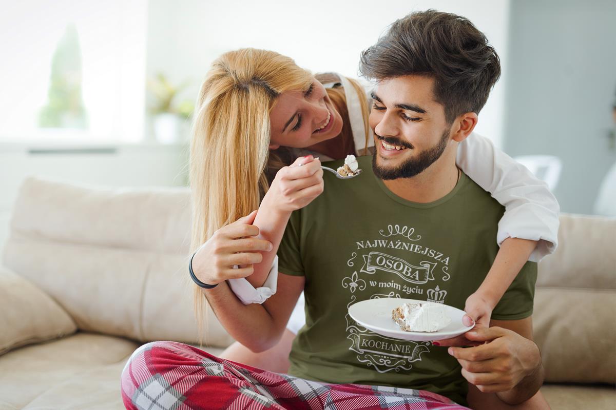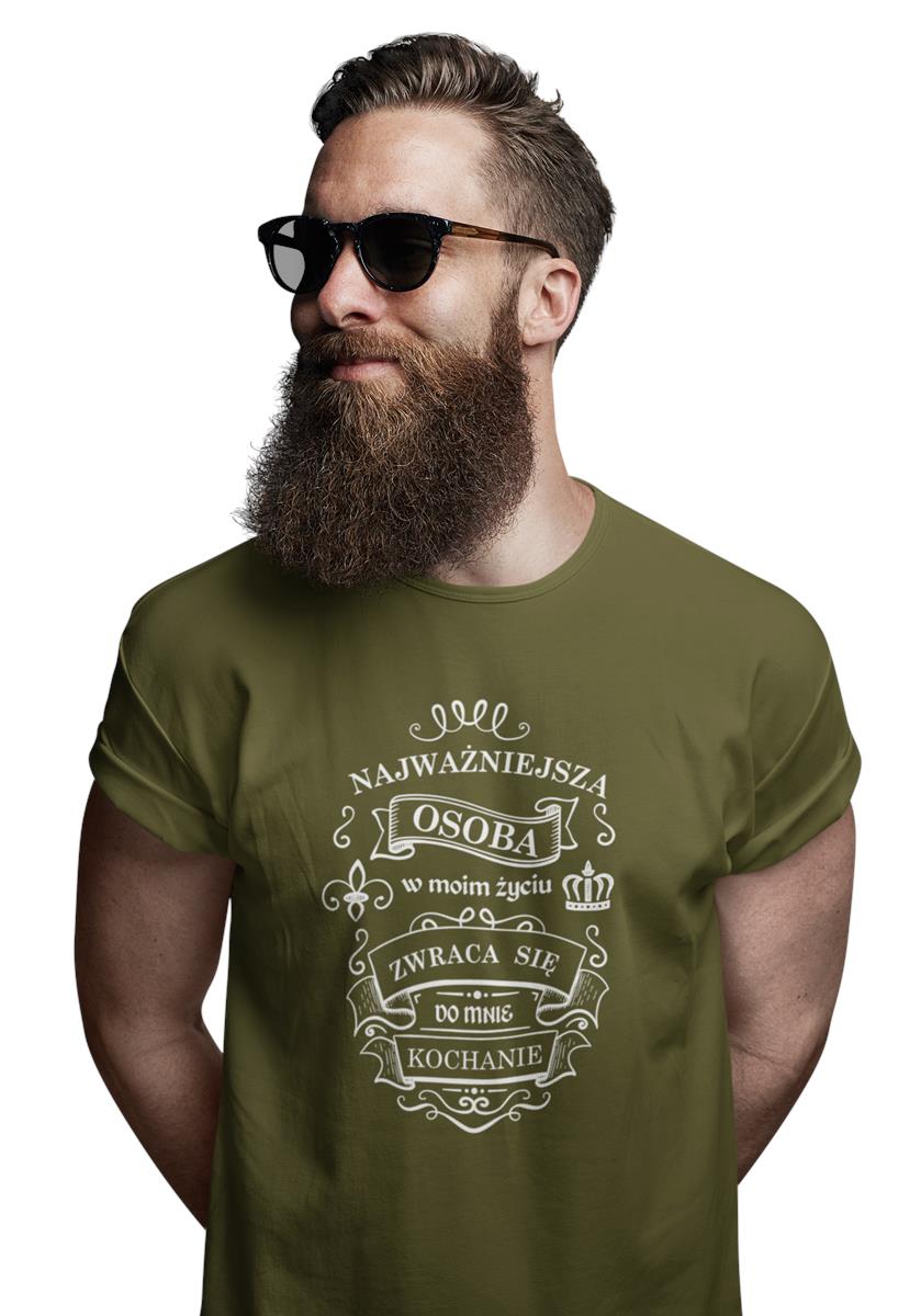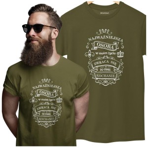 KOSZULKA NA WALENTYNKI PREZENT DLA CHŁOPAKA NAJWAŻNIEJSZA OSOBAW MOIM ŻYCIU ZWRACA SIĘ DO MNIE KOCHANIE KOLOR KHAKI