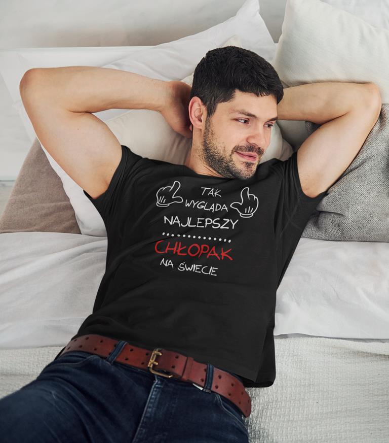 "Tak wygląda najlepszy chłopak na świecie" – ta koszulka to nie tylko styl, ale i humor, który podkreśli wyjątkowość obdarowywanej osoby.