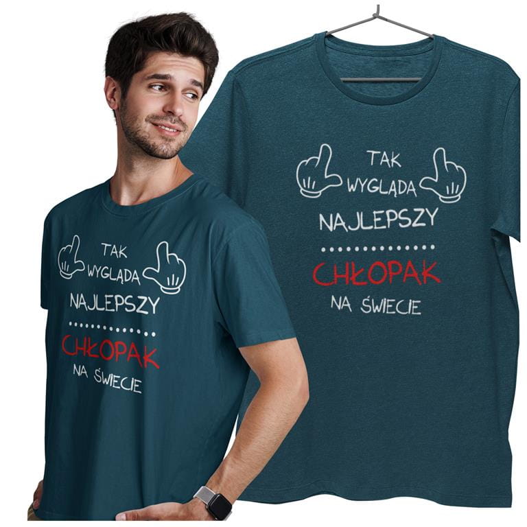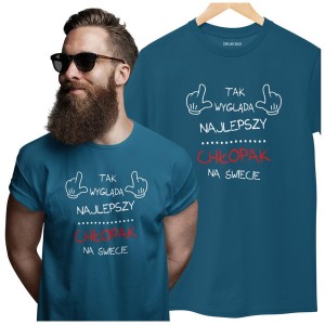 "Tak wygląda najlepszy chłopak na świecie" – ta koszulka to nie tylko styl, ale i humor, który podkreśli wyjątkowość obdarowywanej osoby.