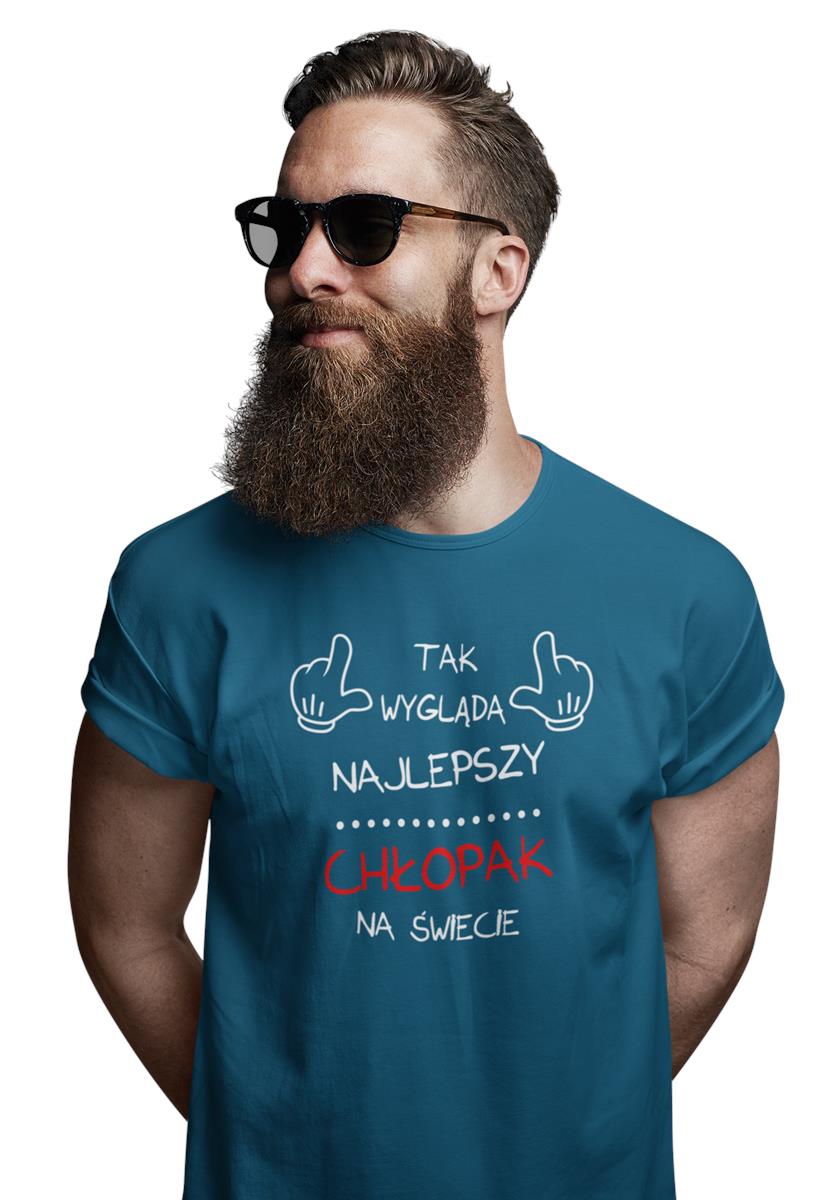 KOSZULKA NA WALENTYNKI PREZENT DLA CHŁOPAKA TAK WYGLĄDA CHŁOPAK KOLOR PETROL BLUE