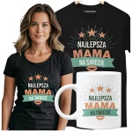KOSZULKA Z KUBKIEM dla Mamy na Dzień Matki z kolorowym nadrukiem: "Najlepsza mama na świecie" kolor czarny
