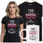 KOSZULKA Z KUBKIEM dla Mamy na Dzień Matki z kolorowym nadrukiem: "Tak wygląda najcudowniejsza mama na calutkim świecie" kolor czarny