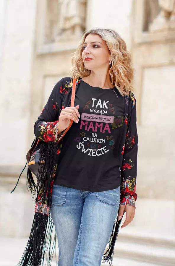Koszulka z napisem: "Tak wygląda najcudowniejsza mama na calutkim świecie".