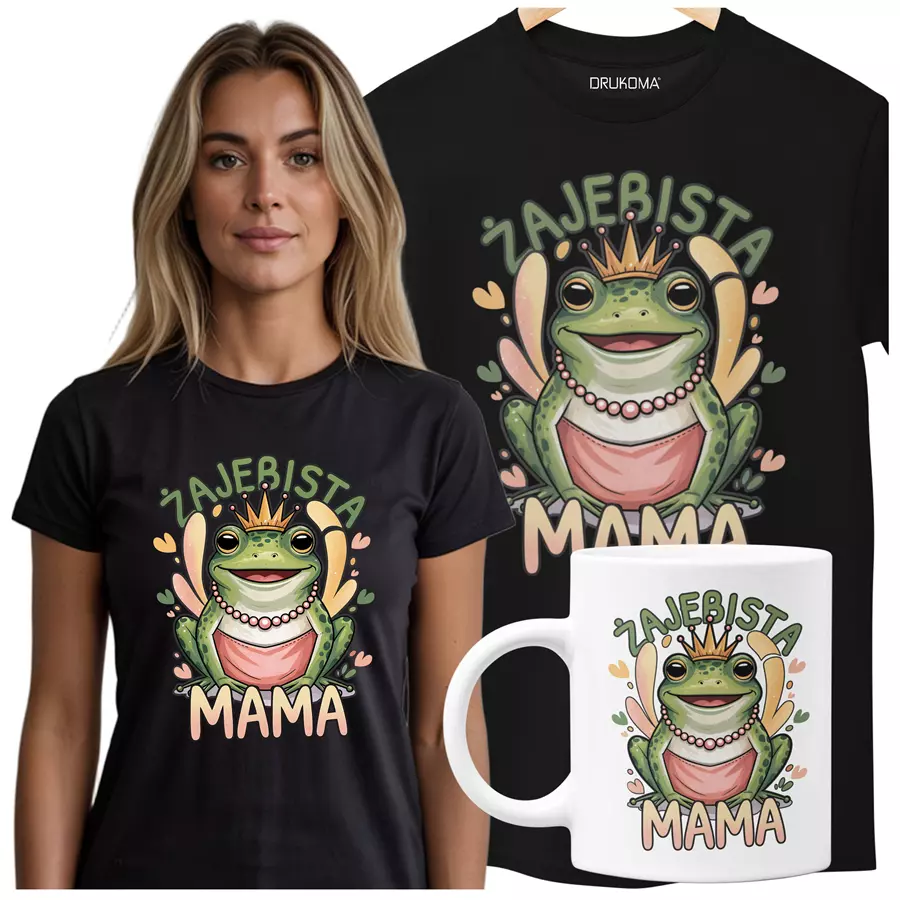 KOSZULKA Z KUBKIEM dla Mamy na Dzień Matki z napisem: "ŻAJEBISTA MAMA" kolor czarny