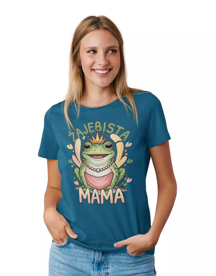 KOSZULKA Z KUBKIEM dla Mamy na Dzień Matki z napisem: "ŻAJEBISTA MAMA" kolor petrol