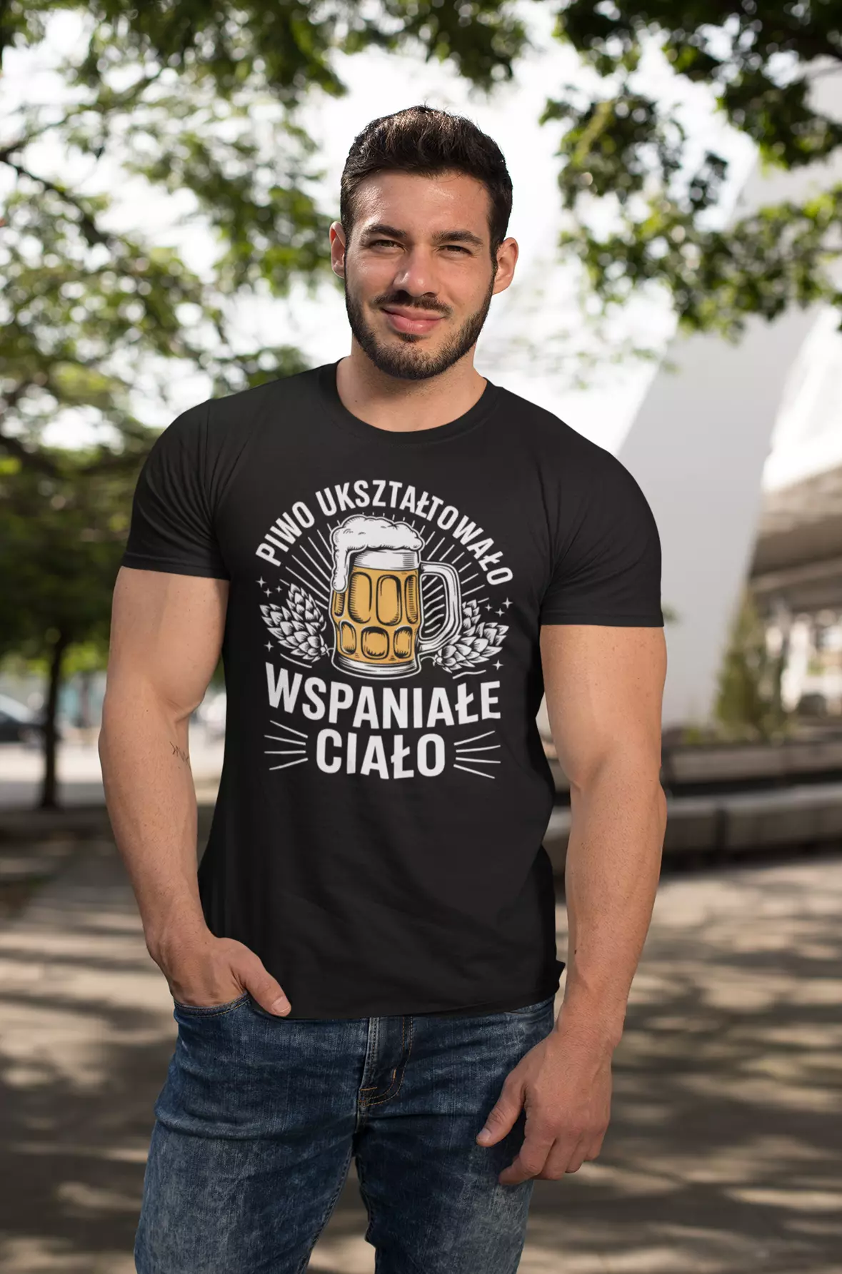KOSZULKA ZABAWNA NA KAŻDĄ OKAZJE Z NAPISEM: "PIWO UKSZTAŁTOWAŁO WSPANIAŁE CIAŁO".