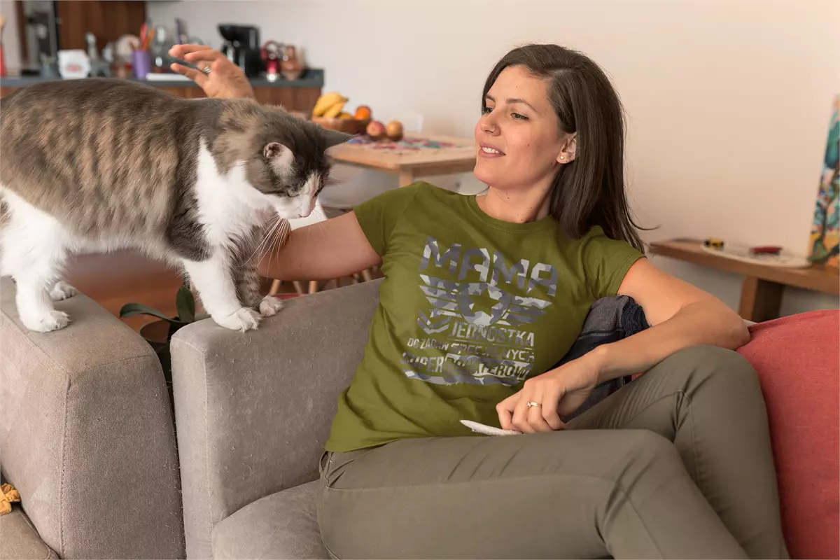KOSZULKA dla Mamy Z KOLOROWYM NADRUKIEM na Dzień Matki: "MAMA jednostka do zadań specjalnych super bohaterów" kolor khaki