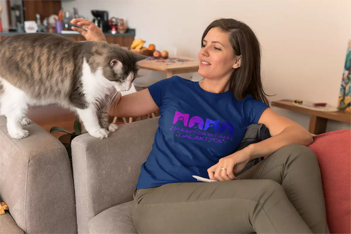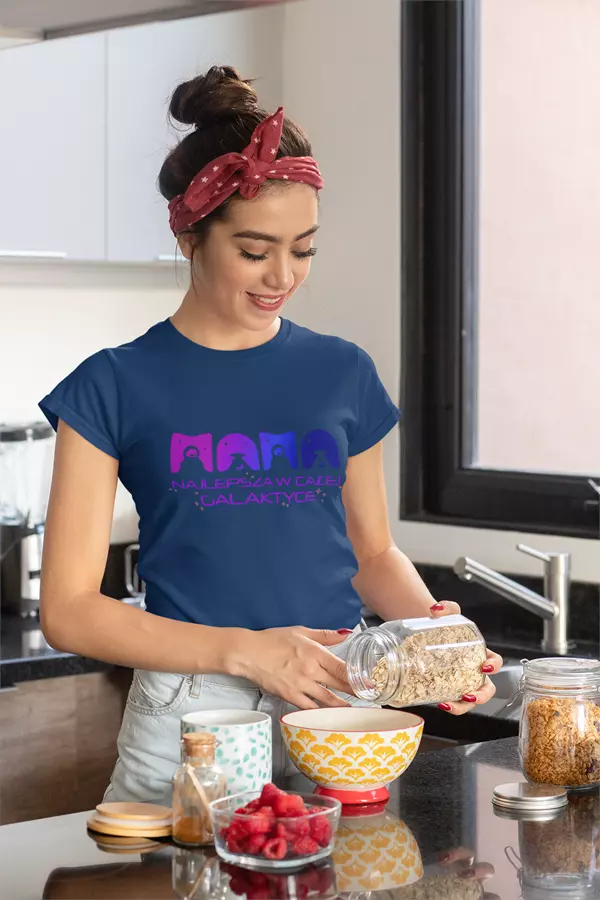KOSZULKA dla Mamy Z KOLOROWYM NADRUKIEM na Dzień Matki: "MAMA najlepsza w całej galaktyce" kolor granatowy