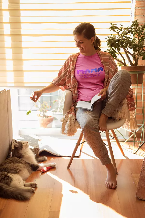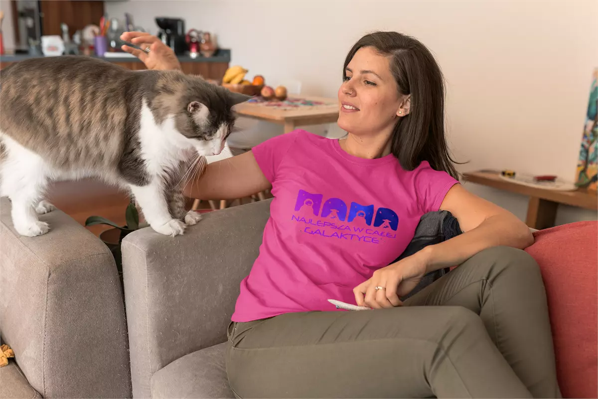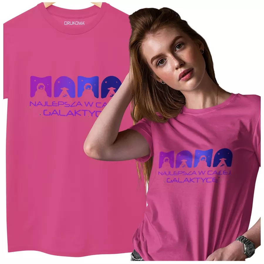 KOSZULKA dla Mamy Z KOLOROWYM NADRUKIEM na Dzień Matki: "MAMA najlepsza w całej galaktyce" kolor różowy