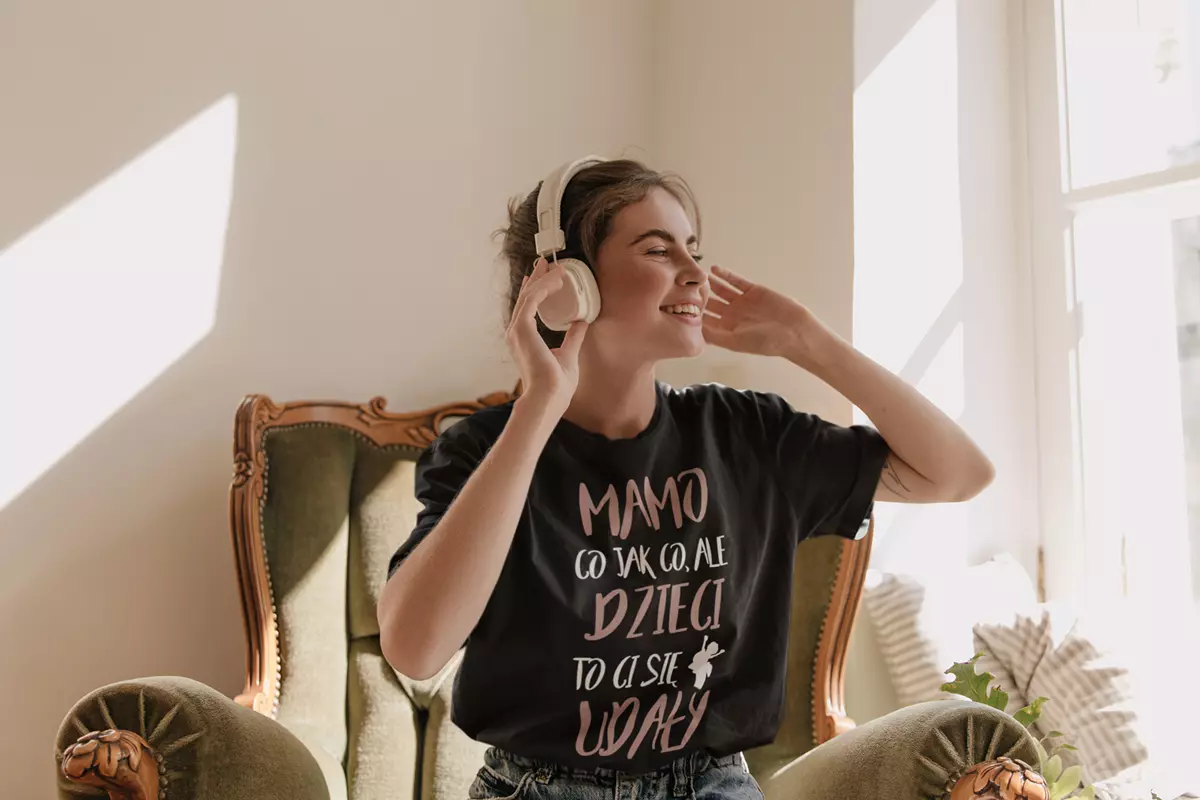 KOSZULKA dla Mamy Z KOLOROWYM NADRUKIEM na Dzień Matki: "Mamo co jak co, ale dzieci to ci się udały" kolor czarny