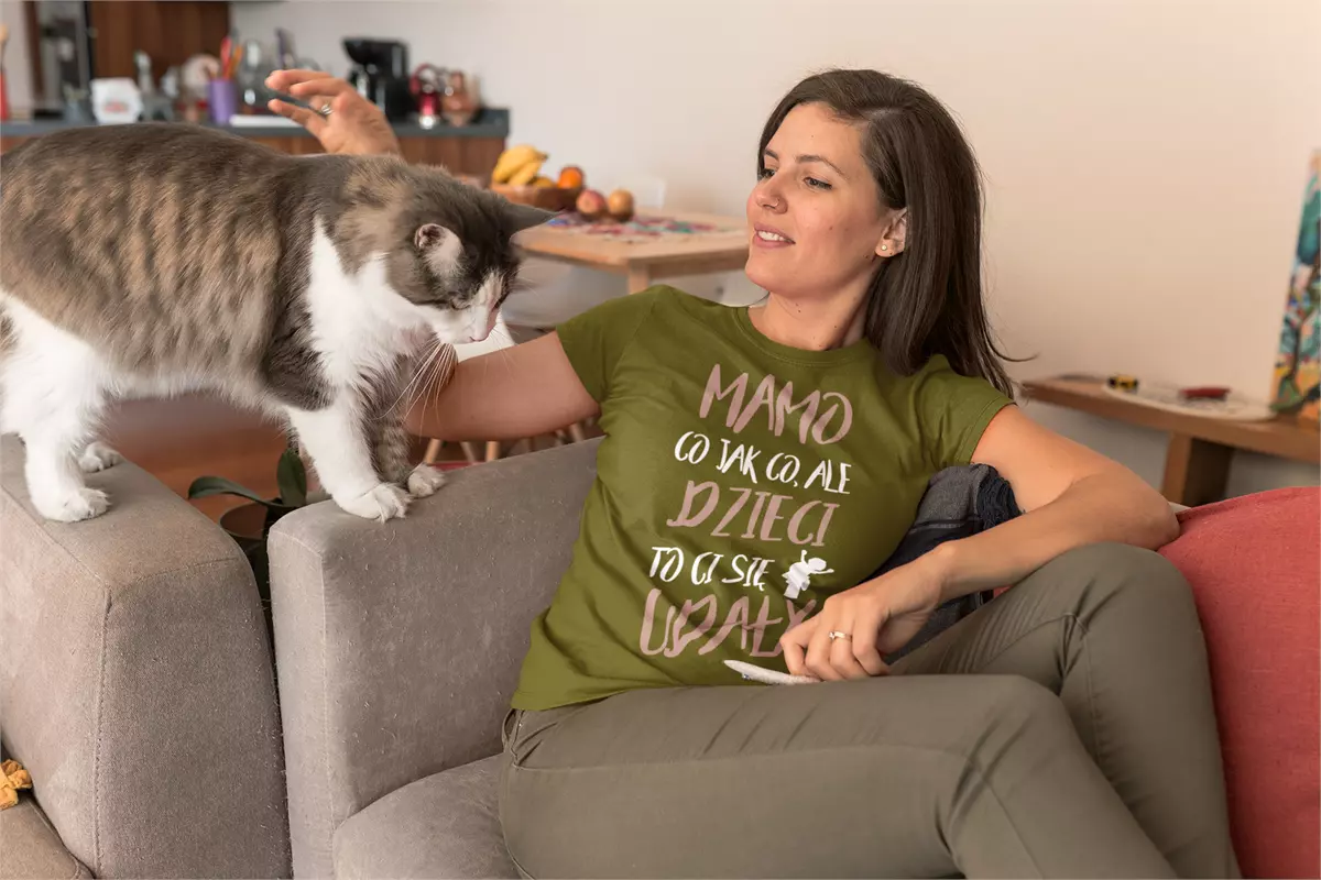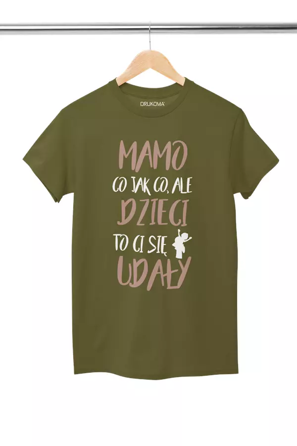 KOSZULKA dla Mamy Z KOLOROWYM NADRUKIEM na Dzień Matki: "Mamo co jak co, ale dzieci to ci się udały" kolor khaki