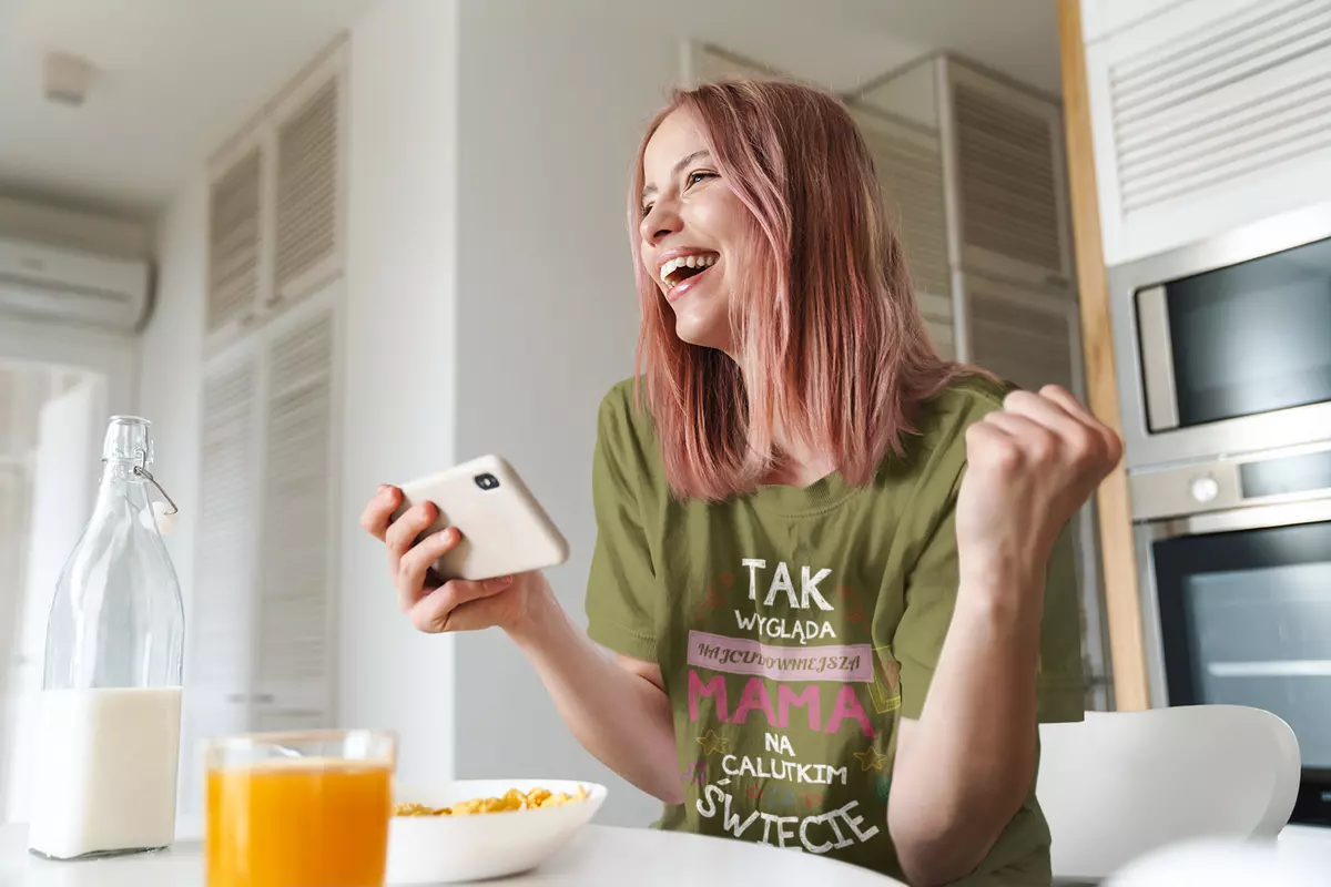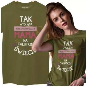 KOSZULKA dla Mamy Z KOLOROWYM NADRUKIEM na Dzień Matki: "Tak wygląda najcudowniejsza mama na calutkim świecie" kolor khaki