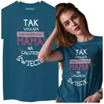 KOSZULKA dla Mamy Z KOLOROWYM NADRUKIEM na Dzień Matki: "Tak wygląda najcudowniejsza mama na calutkim świecie" kolor petrol