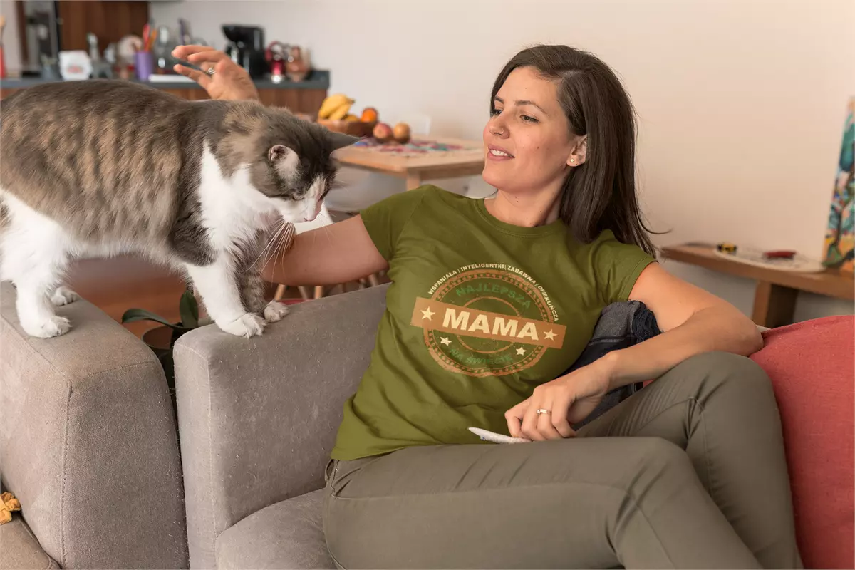 KOSZULKA dla Mamy Z KOLOROWYM NADRUKIEM na Dzień Matki: "WSPANIAŁA | INTELIGENTNA | ZABAWNA | OPIEKUŃCZA Najlepsza Mama na świecie" kolor khaki