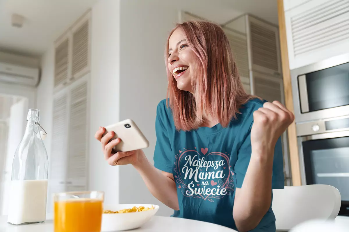 KOSZULKA dla Mamy na Dzień Matki z napisem: "Najlepsza Mama na Świecie" kolor petrol blue
